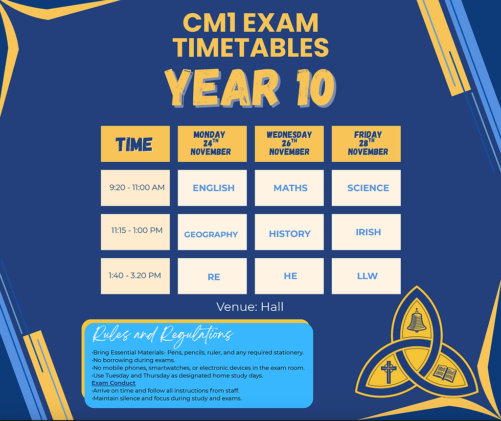 KS3 CM1 Exam Timetables